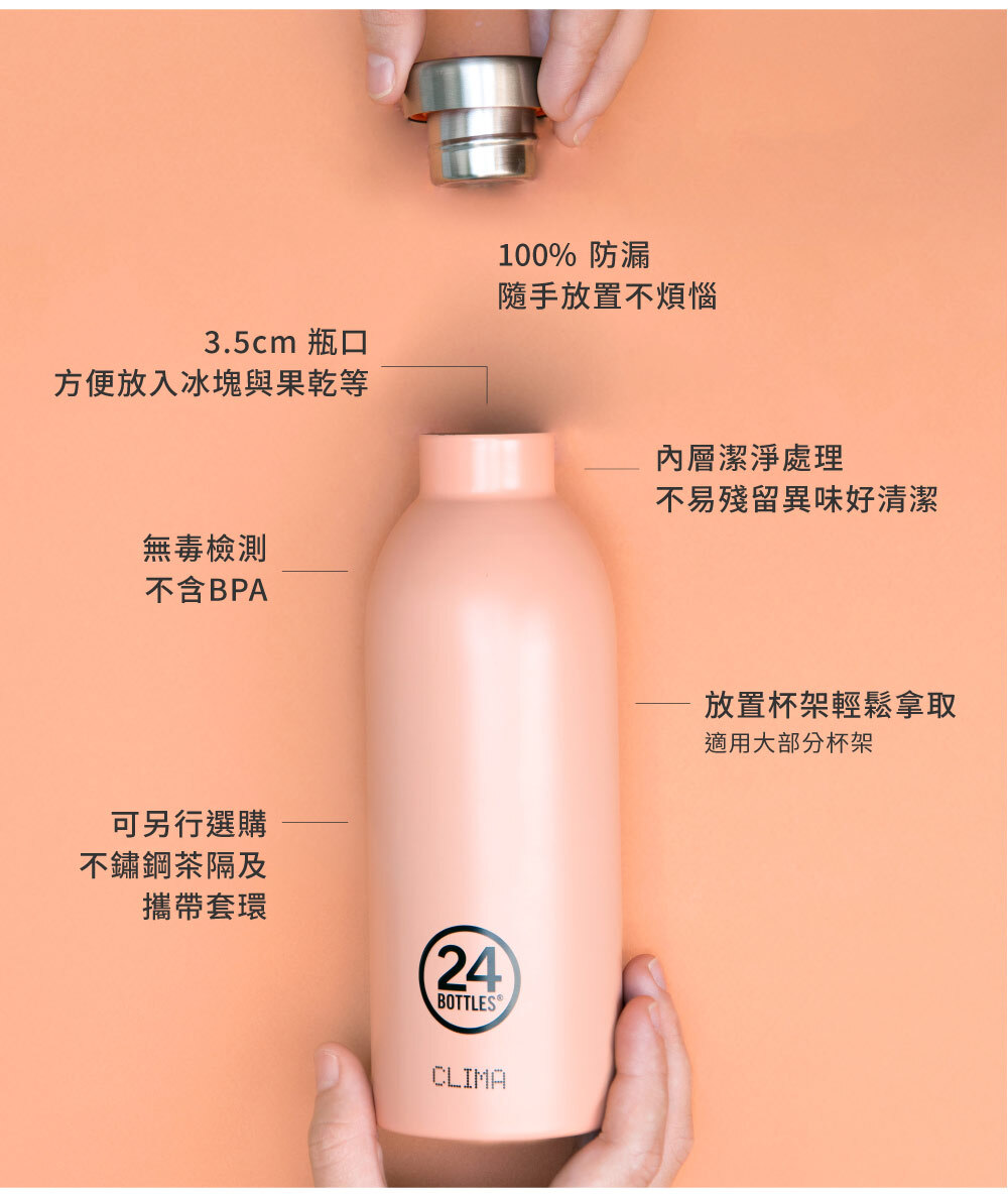◆ 瓶身+瓶蓋:皆使用食品級304不鏽鋼安全材質製造