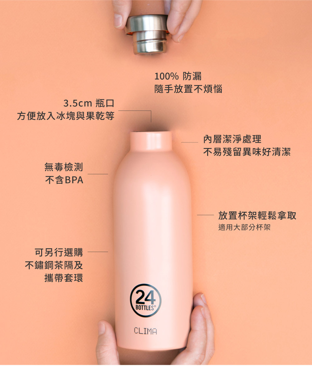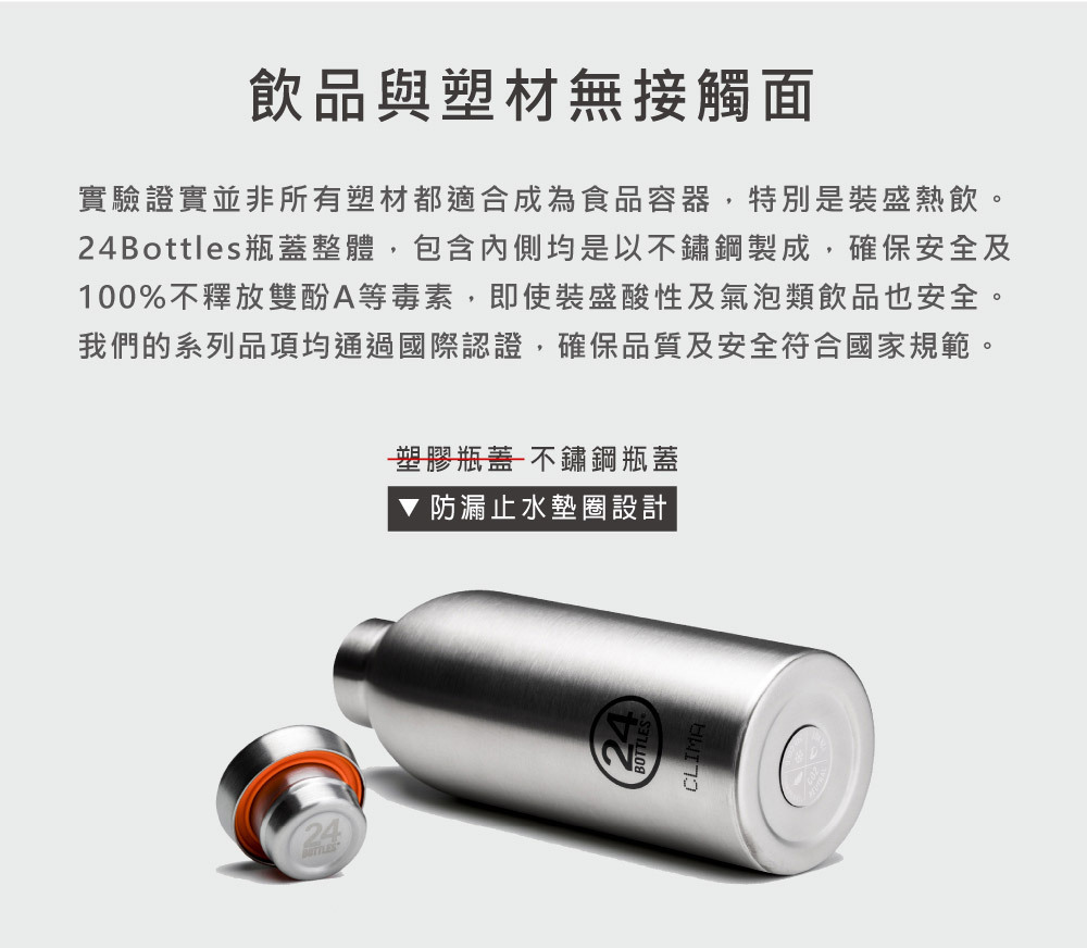◆ 瓶身+瓶蓋:皆使用食品級304不鏽鋼安全材質製造