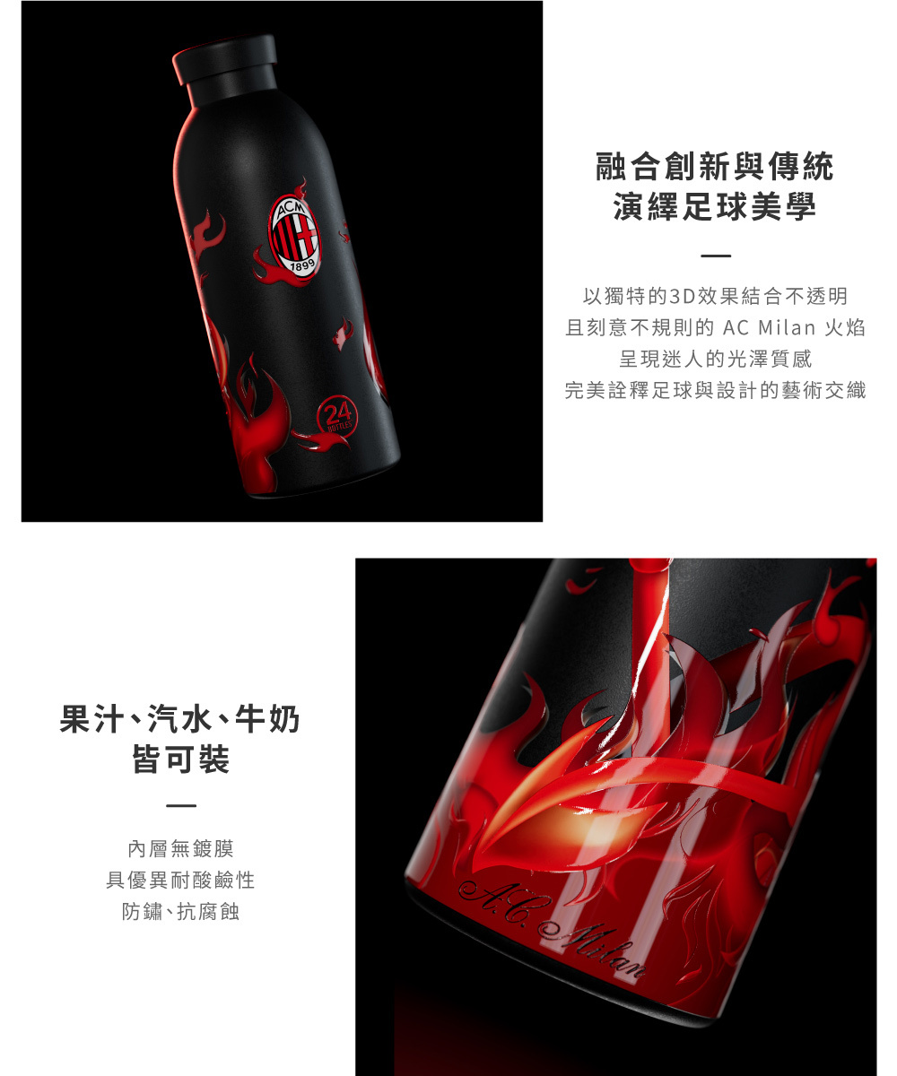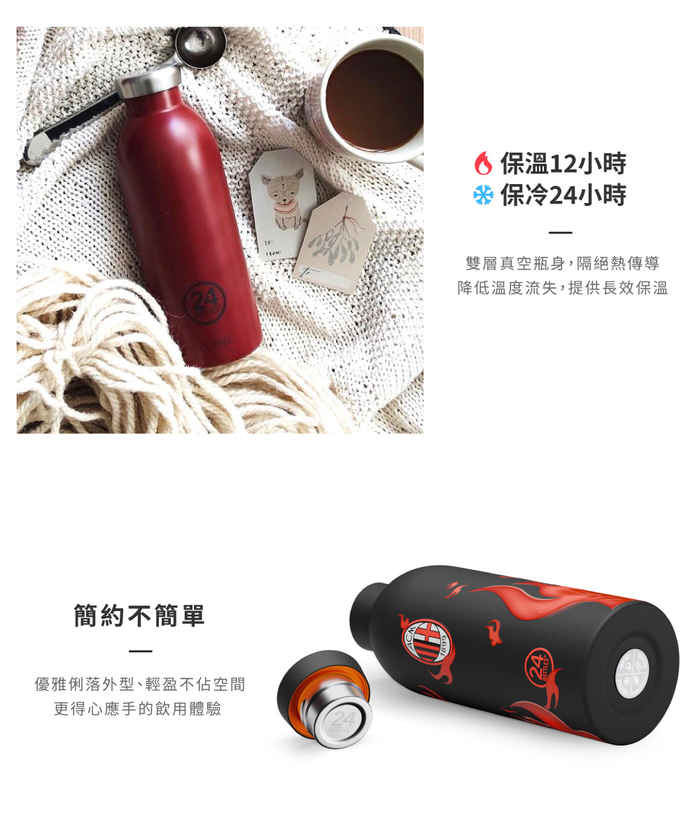 義大利 24Bottles 不鏽鋼雙層保溫瓶 500ml - 限量聯名 AC Milan X 24Bottles