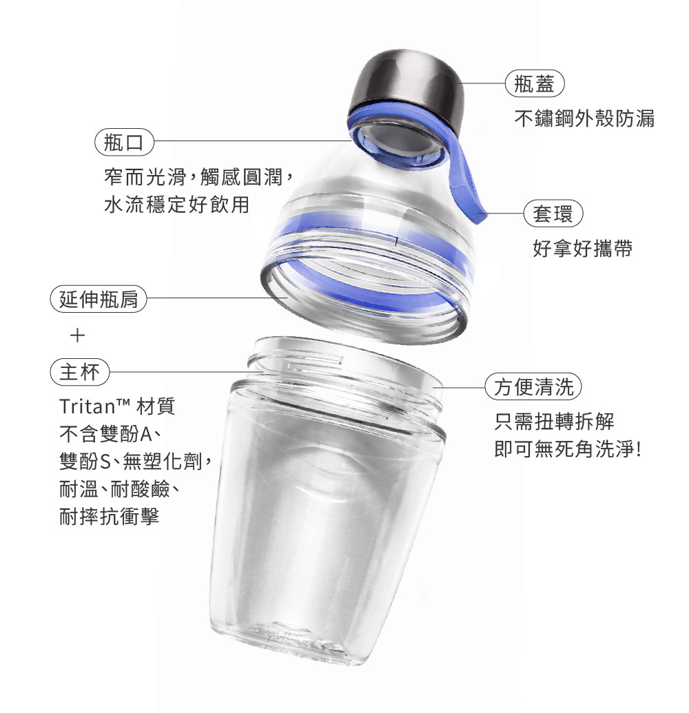◆ 全透明Tritan™ 瓶身,增添飲用視覺樂趣