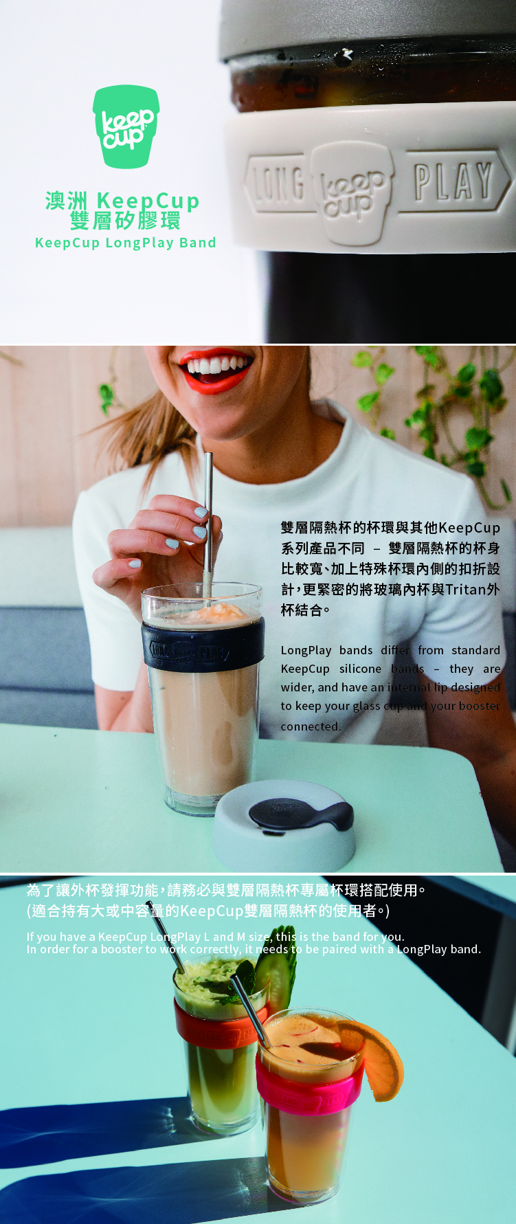澳洲KeepCup雙層隔熱系列隨身杯容量 M / L 適用 。