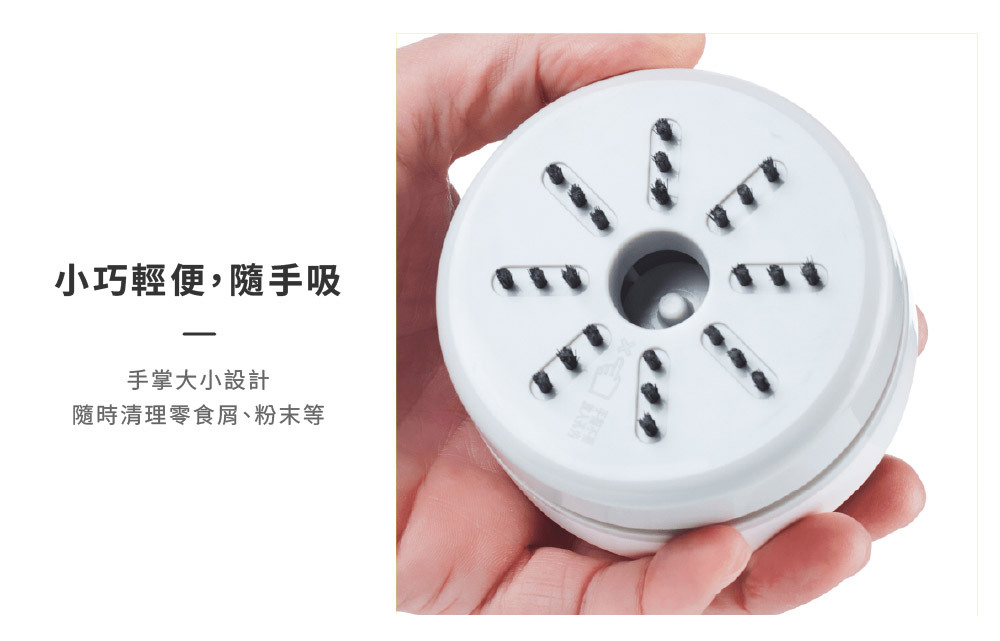 ◆ 小巧輕便,隨手吸:手掌大小,隨時清理