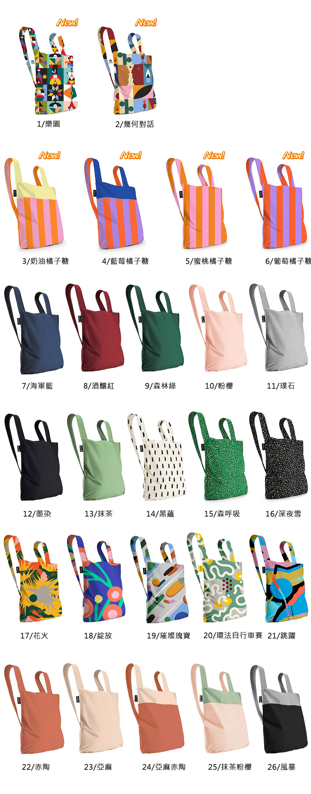 // 結帳請備註顏色代號 ex. 6+B (此即代表 葡萄橘子糖後背包+樂園托特包) //
