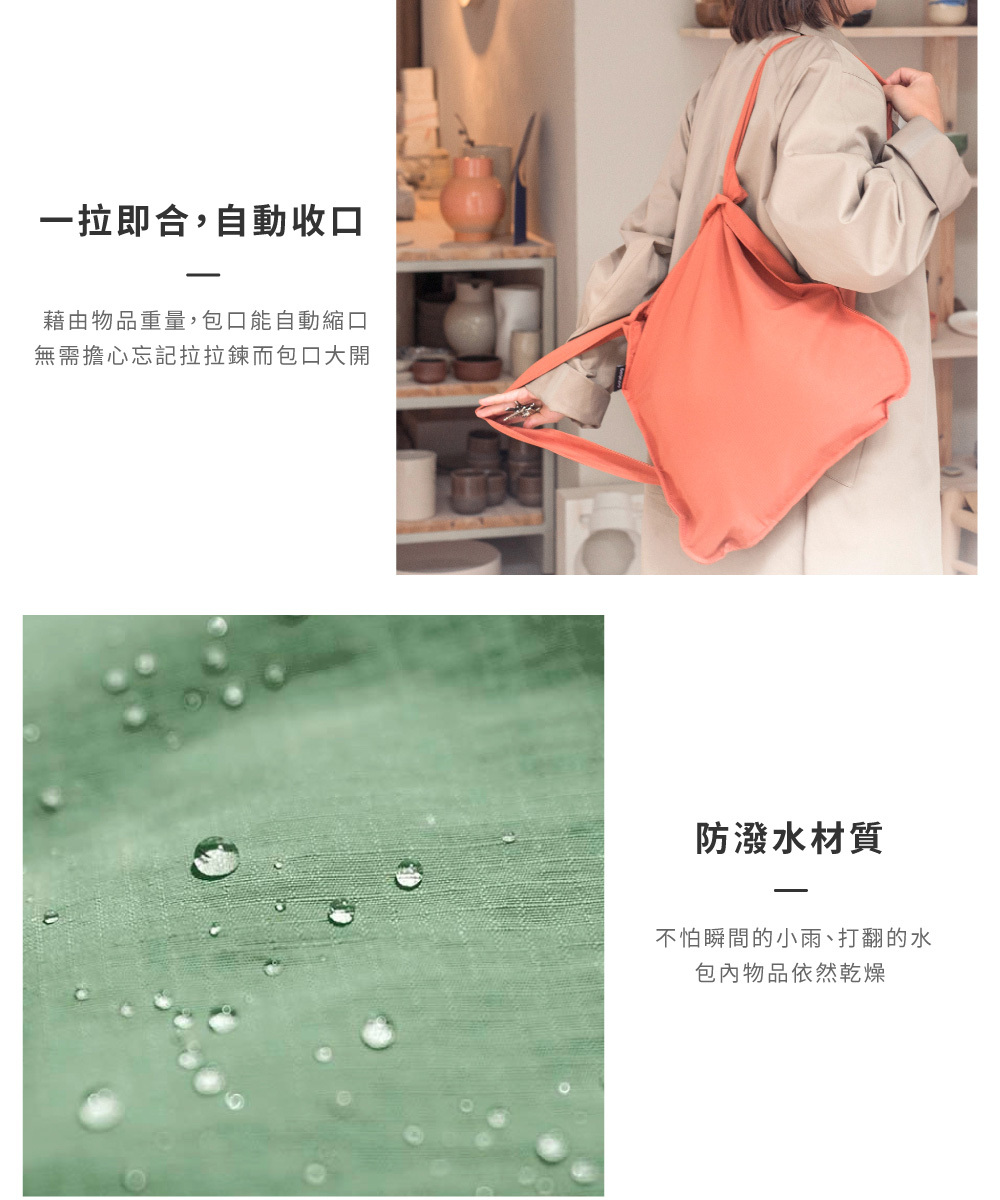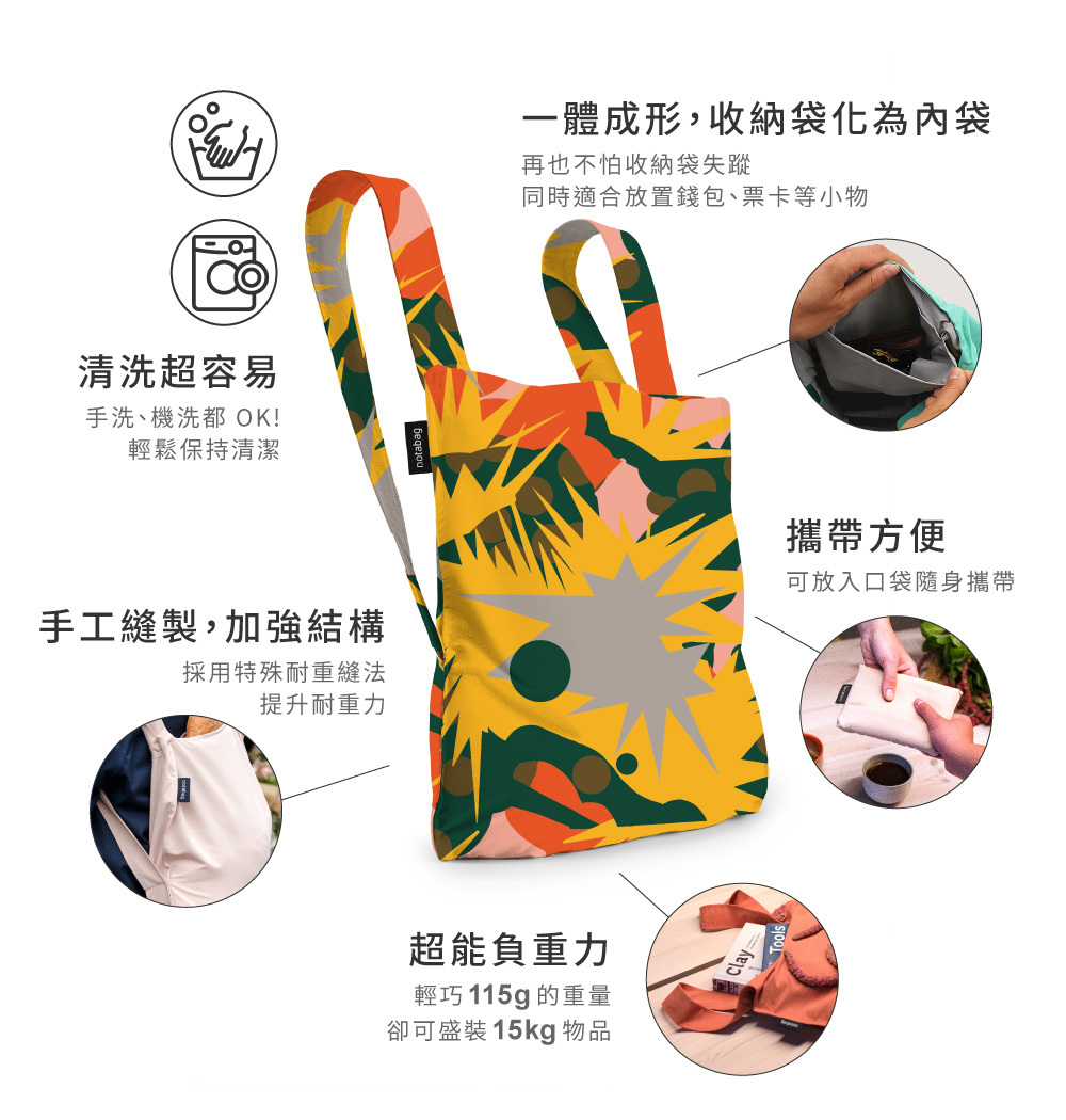◆ 展開後收納袋變內袋;方便存放錢包、鑰匙等小物