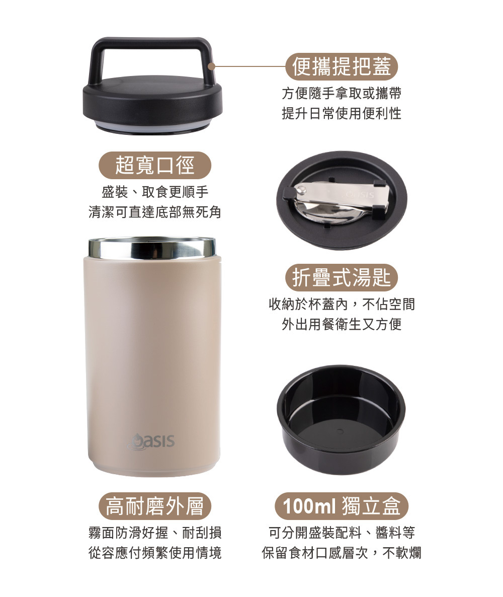 ◆ 附折疊不鏽鋼湯匙,於杯蓋內側,不佔空間且衛生